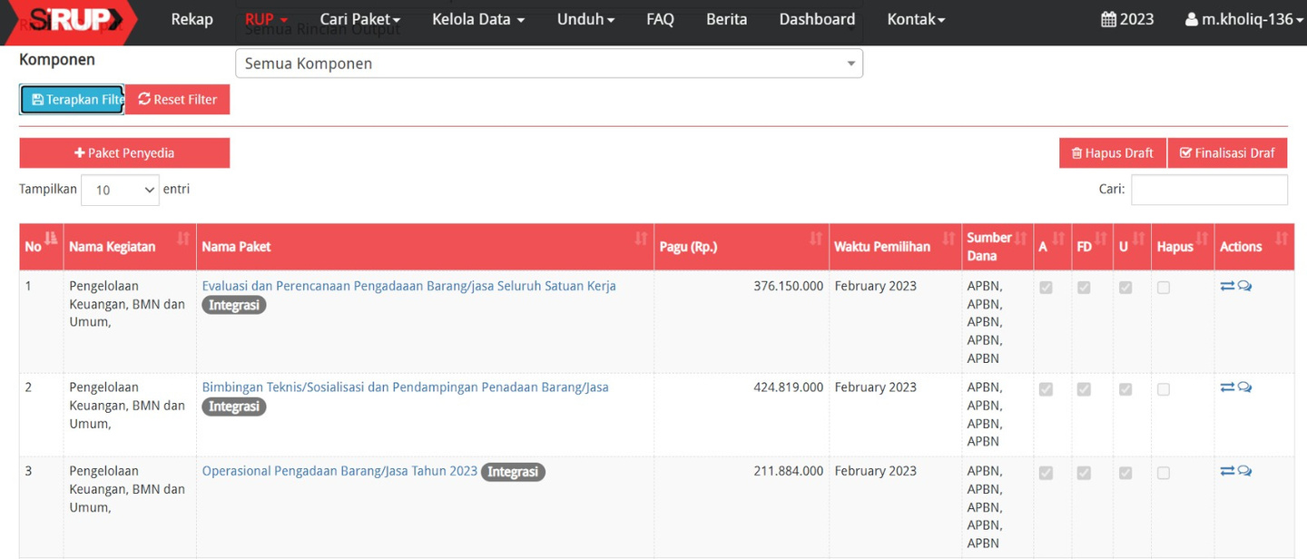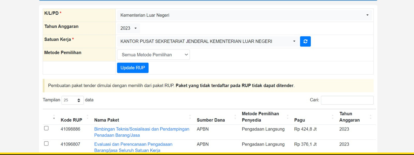 Paket yang sudah dibuat dan diumumkan oleh KPA dapat di lihat di https://lpse.kemlu.go.id/